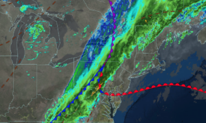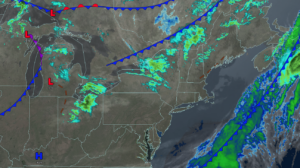 UPDATED 04/05/26 9:21 AM A strong cold front will produce waves of rainfall by this Easter afternoon. A chilly but sunny start to the new