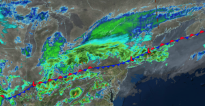 UPDATED 04/05/26 9:21 AM A strong cold front will produce waves of rainfall by this Easter afternoon. A chilly but sunny start to the new