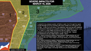 UPDATED 03/15/26 10:12 AM A warm front will bring waves of heavy rainfall late tonight through tomorrow morning. A cold front will then produce waves