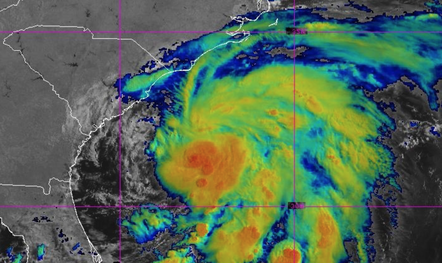 Tropical Storm Chantal formed this morning to the east of Georgia and is expected to slowly drift northward towards the South Carolina coast tonight. Chantal will be the first tropical low-pressure system to make landfall on the United States. Chantal currently has the bulk of the convection on the eastern side of the circulation, with the center exposed on the western side of the circulation. Improved organization will be possible before landfall, but no significant intensification is expected at this time. Chantal is expected to move into the South Carolina coast by early tomorrow morning and then lift into central North Carolina by Monday morning. Once the storm makes landfall, the circulation will rapidly shift to post-tropical and develop more cold-core characteristics. This storm is expected to produce 2″ to 6″ of rain along the northeastern coast of South Carolina and along the coast of North Carolina and 1″ to 2″ further inland in northeastern South Carolina and east-central North Carolina.