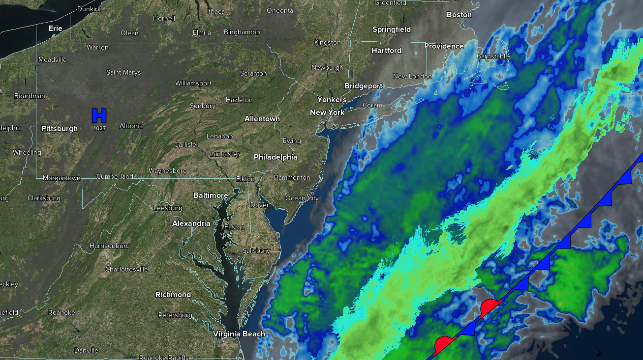 An area of low pressure off the coast will produce cloudy skies to the northwest of the I-95 corridor and scattered showers along and southeast of the I-95 corridor.  Winds will be from the northeast at 5 to 10 mph.  High temperatures will range from the upper 60s to the lower 70s.