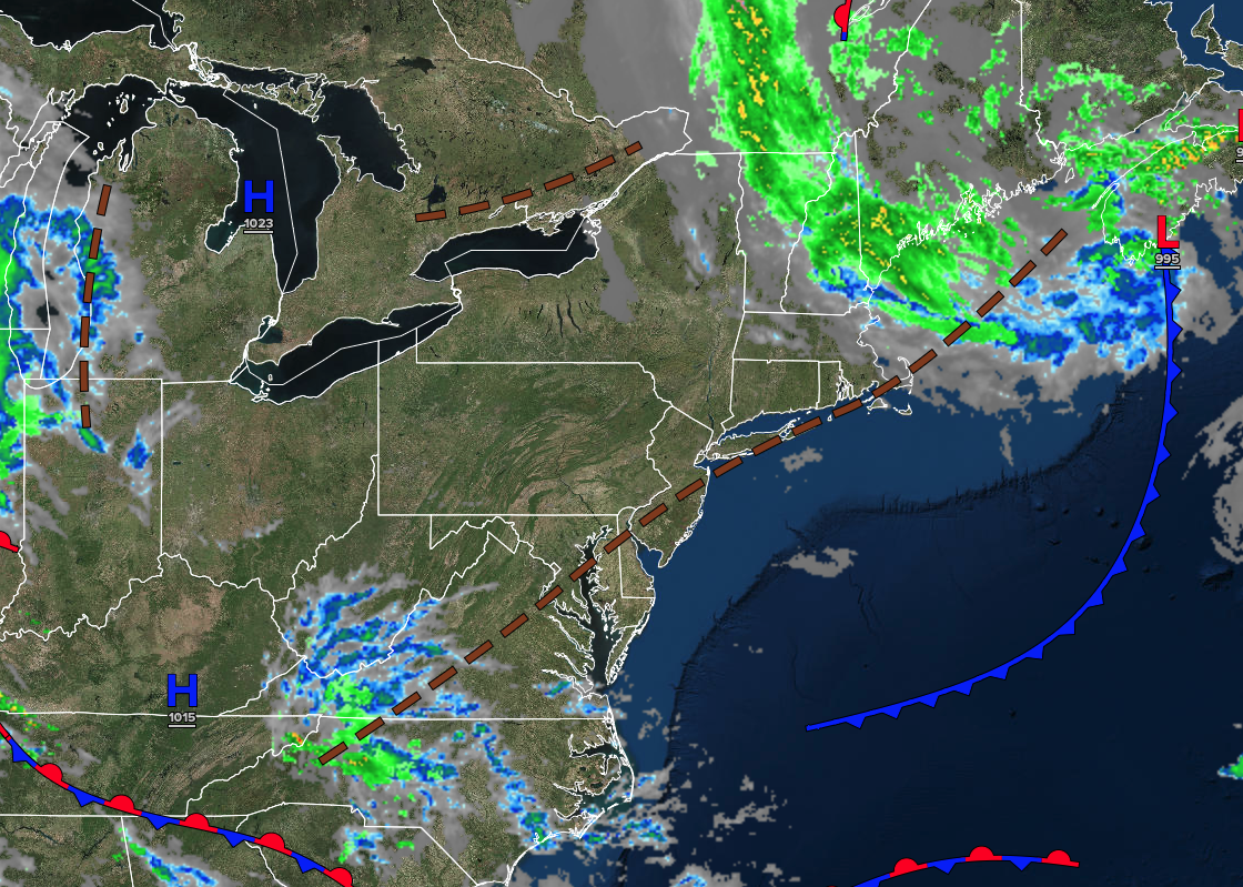 High pressure will produce scattered clouds. Low temperatures will range from the lower to mid-40s over the interior and upper 40s to lower 50s along the coast. High temperatures will range from the mid to upper 60s over the interior, lower to mid-70s in the Delaware River Valley, and upper 60s to lower 70s along the coast.