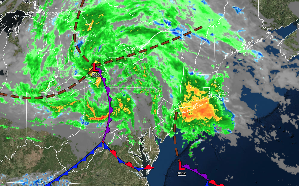 A coastal storm and an approaching cold front will produce waves of rainfall today. Unsettled and cool conditions are expected through the Memorial Day Weekend.