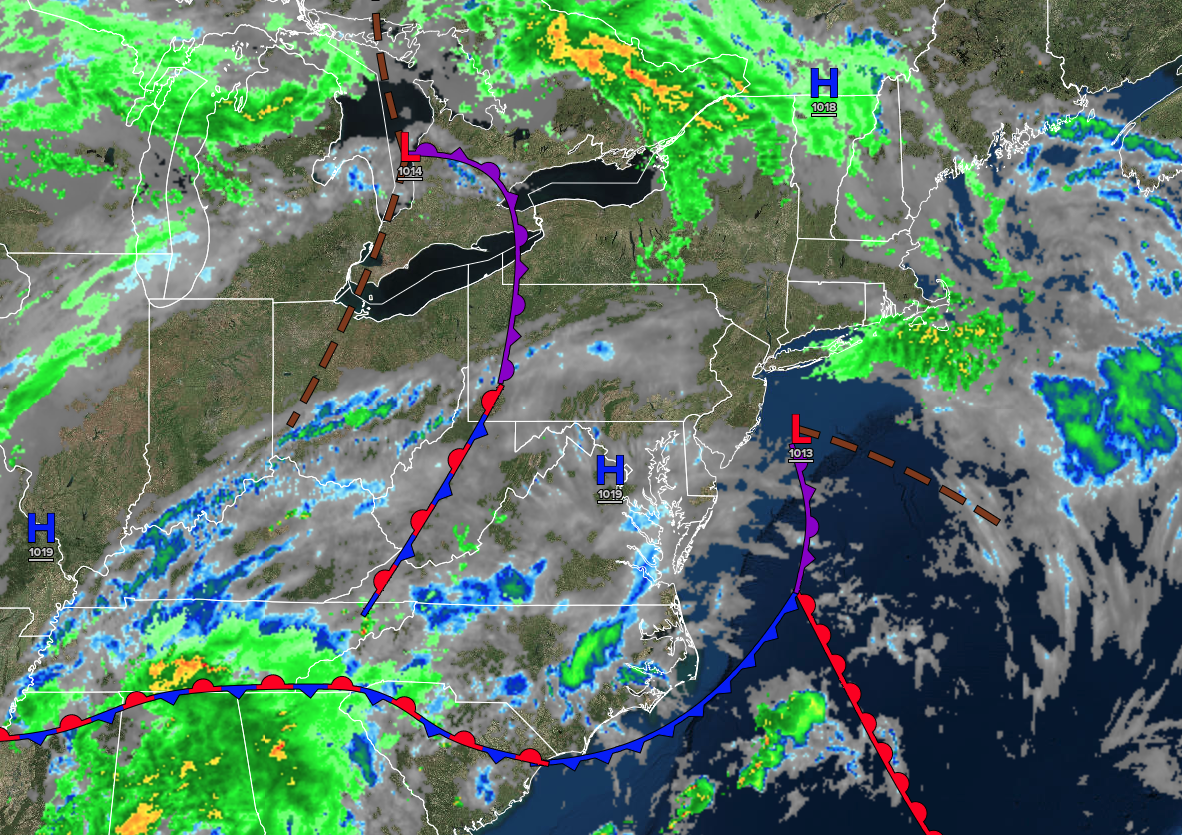 A warm front will produce scattered showers. Low temperatures will range from the mid to upper 50s. High temperatures will range from the upper 60s to lower 70s on Long Island, mid to upper 70s along the coast, lower to mid-80s in the Delaware River Valley, and upper 70s to lower 80s over the interior.