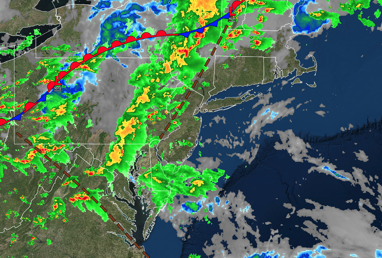 A cold front will move through the region with scattered showers and thunderstorms. Low temperatures will range from the lower to mid-60s over the interior and mid to upper 60s along the coast. High temperatures will range from the lower to mid-70s on Long Island, upper 70s to lower 80s along the coast, lower to mid-80s on the I-95 corridor, and mid to upper 70s over the interior.