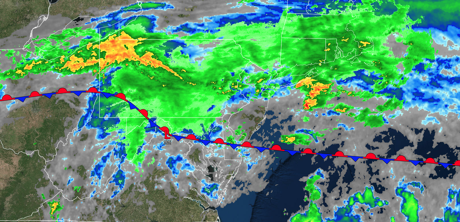 A trough will produce scattered clouds and isolated thunderstorms. Low temperatures will range from the lower to mid-60s. High temperatures will range from the lower to mid-70s on Long Island, upper 70s to lower 80s along the coast, lower to mid-80s on the I-95 corridor, and upper 70s to lower 80s over the interior.