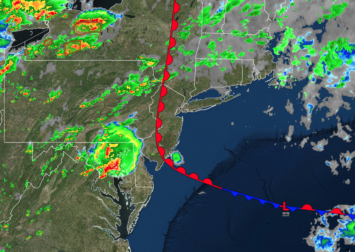 A cold front will move through the region with scattered showers and thunderstorms. A few isolated severe thunderstorms will be possible with heavy downpours, frequent lightning, hail, and wind gusts over 55 mph. Winds will be from the southwest at 5 to 15 mph. High temperatures will range from the upper 70s to lower 80s on Long Island, lower to mid-80s along the coast, upper 80s to lower 90s on the I-95 corridor, and lower to mid-80s over the interior.