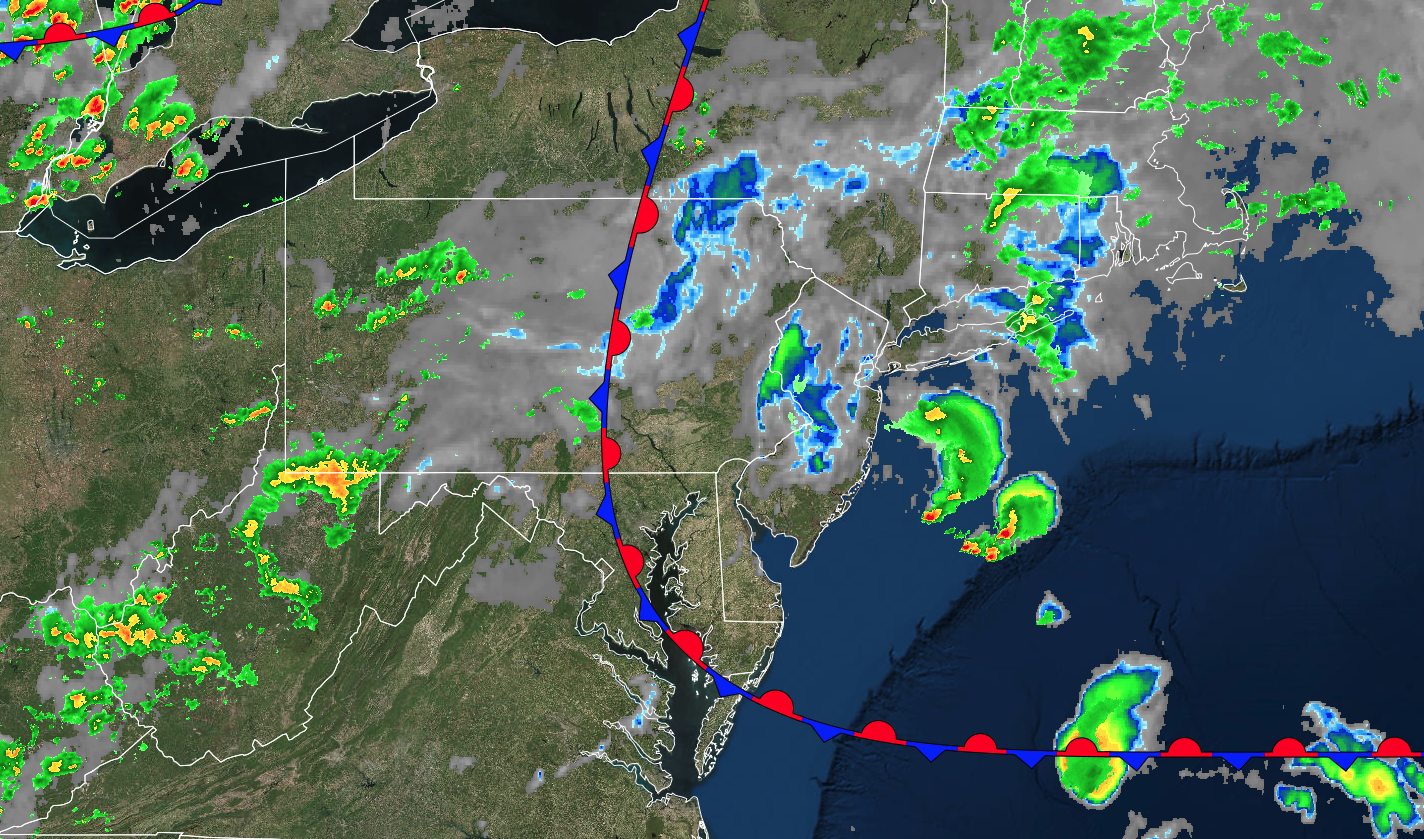 The maritime airmass will finally give way as showers and thunderstorms lift through the region. Additional showers and thunderstorms are a threat tomorrow with a cold front. A heat wave takes hold by next week.