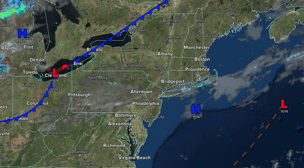 High pressure will produce scattered clouds. Low temperatures will range from the mid-50s to the upper 50s over the interior, from the upper 50s to the lower 60s in the suburbs, and from the lower to mid-60s in urban areas. High temperatures will range from the lower to mid-70s over the interior and mid to upper 70s along the coast.