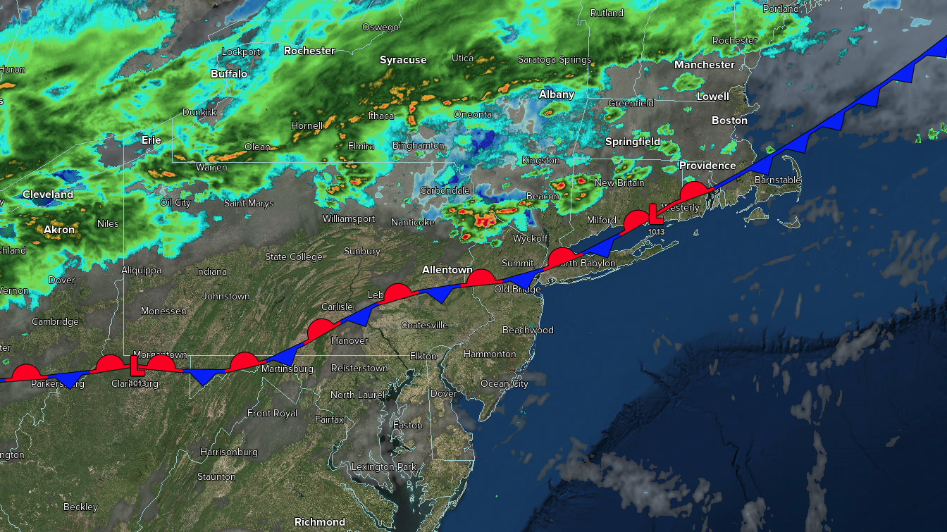 A cold front will stall over the region with scattered showers and thunderstorms in the morning, becoming widespread in the afternoon. The thunderstorms will be capable of heavy downpours, frequent lightning, and wind gusts over 40 mph. Flooding will be a threat. Winds will be from the northeast at 1 to 5 mph. High temperatures will range from the mid-70s to the mid-80s over the interior, from the mid to upper 80s in the New York City metropolitan area, and from the upper 80s to the lower 90s in the Philadelphia metropolitan area.