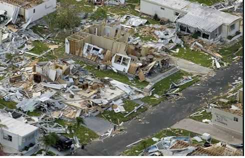 This photo shows severe damage from Hurricane Charlie at Punta Gorda, Florida. on August 13, 2004. Photo Credit – FEMA Library-Public Domain.