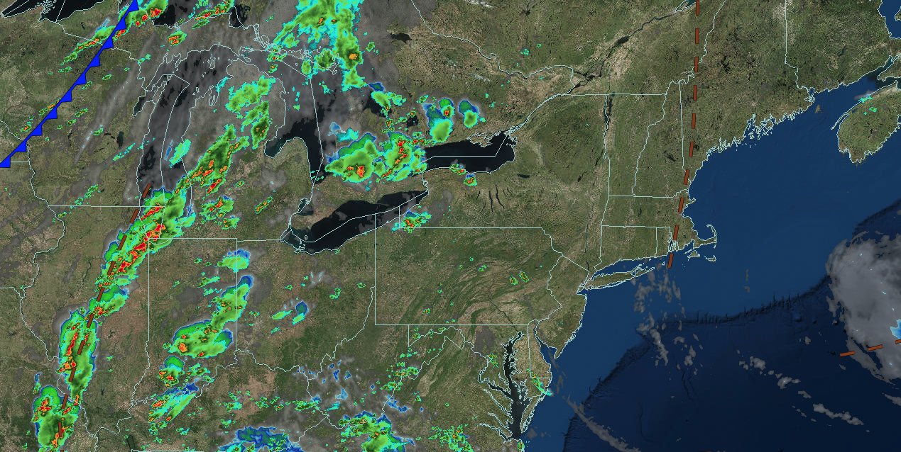 Tranquil but hotter weather conditions are expected through tomorrow morning. A trough will produce a few thunderstorms tomorrow. A strong cold front is expected by Thursday with additional showers and thunderstorms.