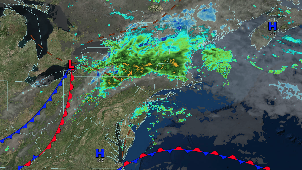 A cold front and area of low pressure will produce periods of showers capable of tropical downpours. Rainfall rates of 1″ per hour will be possible at times. Winds will be from the east at 5 to 10 mph. High temperatures will range from the upper 60s to lower 70s over the interior, mid to upper 70s in the New York City metropolitan area, and upper 70s to lower 80s in the Philadelphia metropolitan area and southern New Jersey.