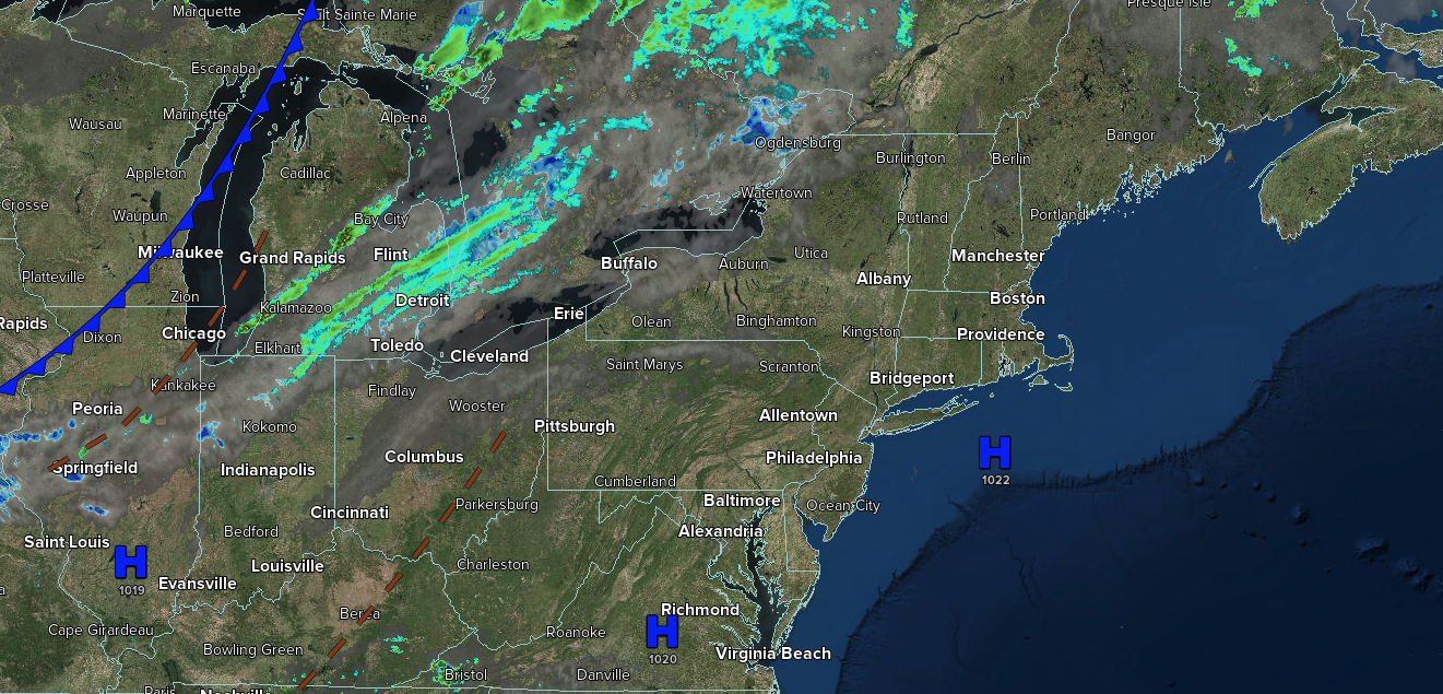 A cold front will produce scattered showers. Winds will veer to the southwest at 5 to 10 mph. Low temperatures will range from the lower to mid-60s over the interior, mid to upper 60s in the suburbs, and upper 60s to lower 70s in urban areas.