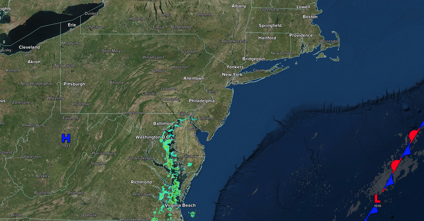 An area of low pressure will produce scattered showers. Low temperatures will range from the upper 50s to the lower 60s over the interior, lower to mid-60s in the suburbs, and mid to upper 60s in urban areas. High temperatures will range from the upper 70s to the lower 80s.