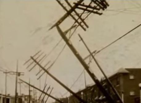 This image shows telephone poles that were snapped like matchsticks by a tornado that struck St. Louis, Missouri on September 27, 1927. Image Credit-KETC-YouTube.