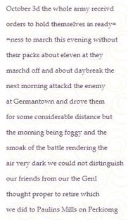 In an article in sandcastles.net the military journal of Lt. George Ewing, who fought in the Battle of Germantown was published. Here is his entry on page 23.