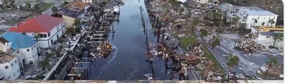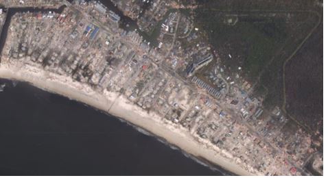 This areal photo shows the mass devastation around Mexico Beach, Florida inflicted by Hurricane Michael on October 10, 2018. Image Credit-NWS.