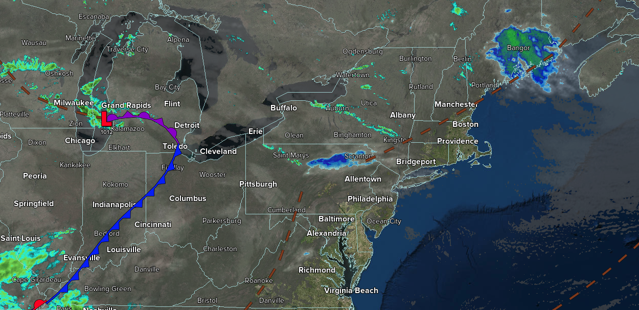 An area of low pressure will produce scattered showers. Low temperatures will range from the lower to mid-40s over the interior, mid to upper 40s in the suburbs, and upper 40s to the lower 50s in urban areas. High temperatures will range from the mid to upper 40s over the interior and lower to mid-50s along the coast.