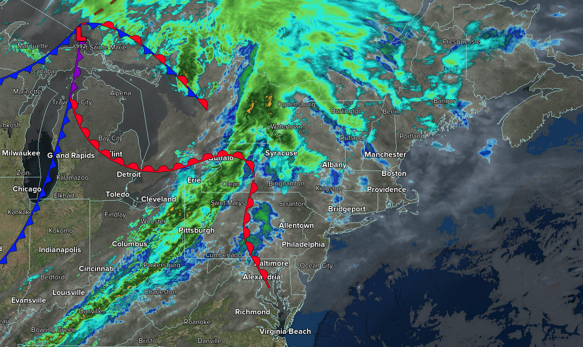 A cold front and area of low pressure will produce periods of showers in the afternoon and evening. Winds will back to the southeast at 10 to 20 mph. High temperatures will range from the mid to upper 50s over the interior, lower to mid-60s in the New York City metropolitan areas and northern Philadelphia suburbs, and mid to upper 60s in the Philadelphia metropolitan areas and southern New Jersey.