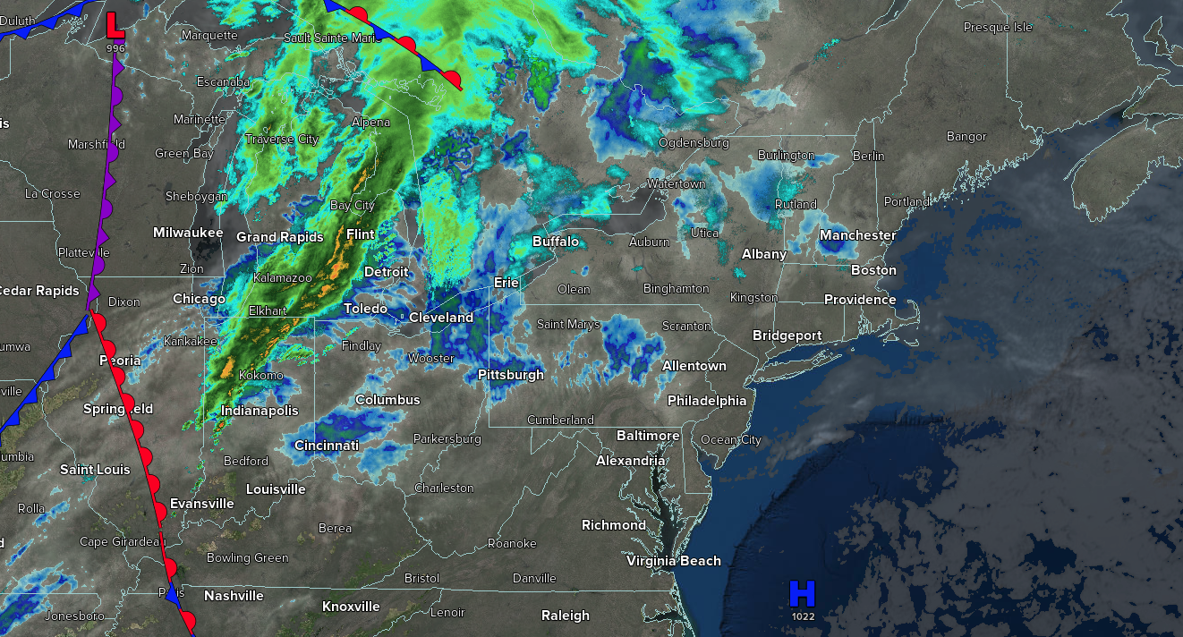A cold front and area of low pressure will produce periods of showers in the afternoon and evening.  Winds will back to the southeast at 10 to 20 mph.  High temperatures will range from the mid to upper 50s over the interior, lower to mid-60s in the New York City metropolitan areas and northern Philadelphia suburbs, and mid to upper 60s in the Philadelphia metropolitan areas and southern New Jersey.