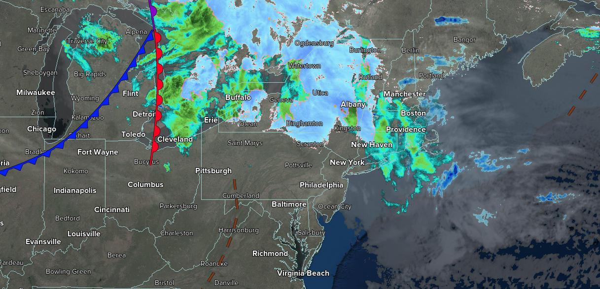 A warm front will lift through the region with scattered showers. A cold front will follow in the afternoon and evening with scattered showers. Low temperatures will range from the lower to mid-40s over the interior and mid to upper 40s along the coast. High temperatures will range from the upper 40s to the lower 50s over the interior, from the mid to upper 50s in the New York City metropolitan areas, and from the upper 50s to the lower 60s in the Philadelphia metropolitan areas.