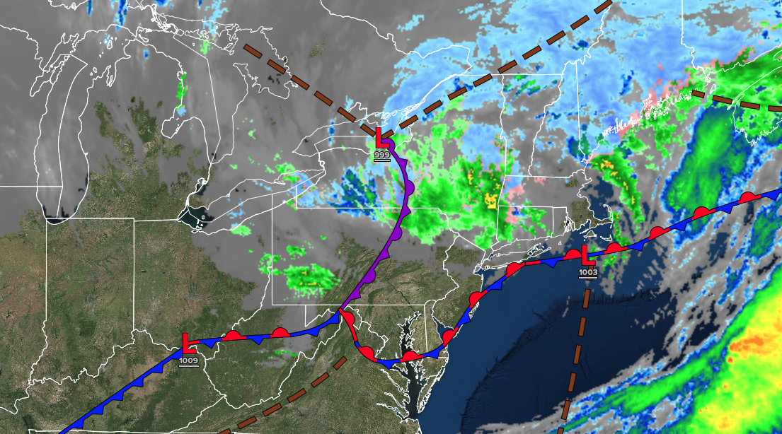 A cold front will produce widespread showers. Winds will back to the southeast at 5 to 10 mph. Low temperatures will range from the mid to upper 30s over the interior and lower to mid-40s along the coast. High temperatures will range from the lower to mid-50s over the interior, lower to mid-50s in the New York City metropolitan area, and upper 50s to lower 60s in the Philadelphia metropolitan area.