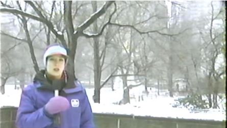 This image shows Meteorologist Jill Brown reporting for The Weather Channel in New York City during the January blizzard of 1996. Image Credit-YouTube.