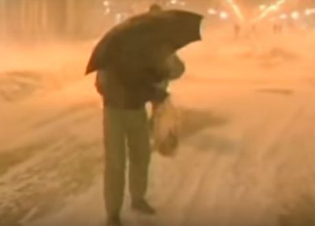 The image shows pedestrians walking on a street in Philadelphia, Pennsylvania searching for supplies during the January blizzard of 1996. Image Credit-YouTube.