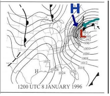 From January 6th through 8th in 1996, much of the Eastern Seaboard was struck by a major nor’easter that wreaked havoc over a heavily populated area. The Megaloplolis from Washington, D.C. to Boston, Massachusetts was buried from this storm that produced 18-30 inches of snow with drifts from 5 to 10 feet high. This incredible winter storm featured blizzard conditions, strong winds, extreme wind chills, and minor to moderate coastal flooding. The region was paralyzed and many services we shut down for over a week. The event produced a whopping three billion dollars in storm damage and over 150 people lost their lives.