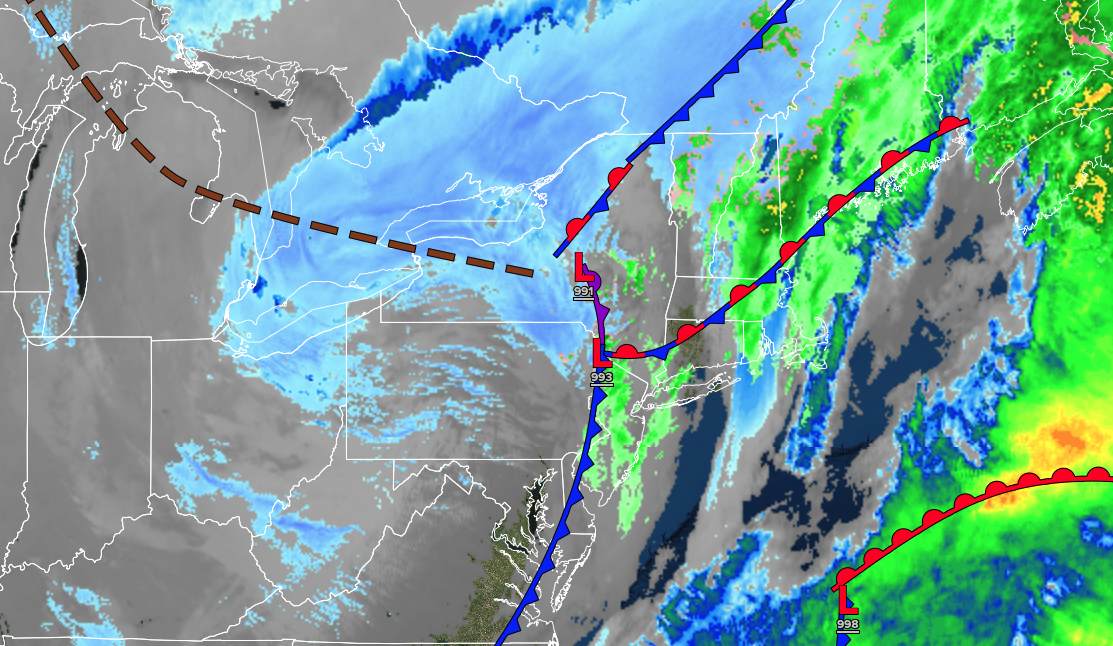 A cold front with an area of low pressure will produce cloudy skies with scattered rain and snow showers on the coast and scattered snow showers elsewhere. High temperatures will range from the lower to mid-30s along the coast, mid- to upper-30s in the Delaware River Valley, and upper-30s to lower-40s along the coast.