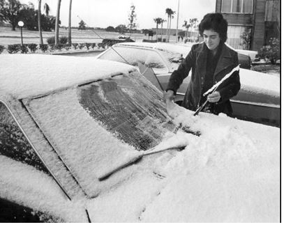 Snowflakes fell as the day began at West Palm Beach, Florida, on January 19, 1977. Photo Credit- Palm Beach Post.
