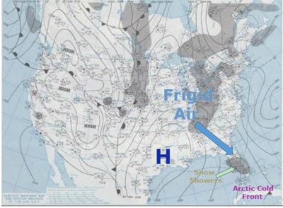With the polar vortex stationed over Quebec and a blocking high-pressure system over Greenland and eastern Canada. There was also a large upper-level ridge over Alaska, As a result, extremely cold air was forced southward during the third week of January.