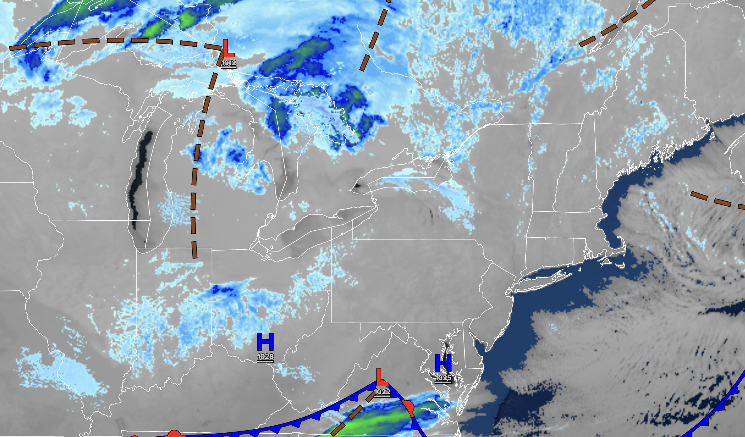 An area of low pressure will exit the region with scattered clouds over the interior and scattered snow showers and strong winds along the coast. Low temperatures will range from the upper 10s to the lower 20s over the interior and mid-20s along the coast. High temperatures will range from the lower to mid-20s over the interior and upper 20s to lower 30s along the coast.