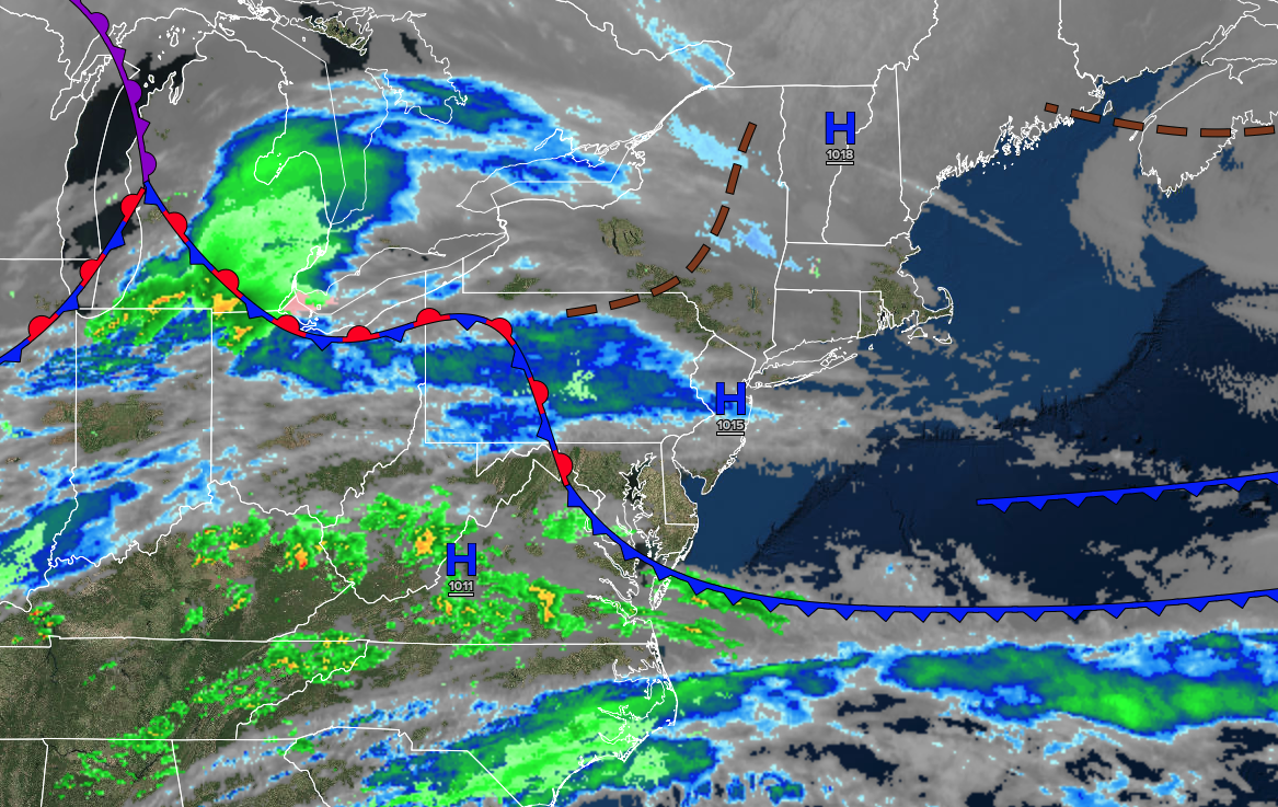 An area of low pressure will produce snow and rain showers, changing over to rain showers. Low temperatures will range from the lower to mid-30s over the interior and upper 30s to lower 40s along the coast. High temperatures will range from the lower to mid-40s over the interior, mid to upper 40s in the New York City metropolitan area, and lower to mid-50s in the Philadelphia metropolitan area.
