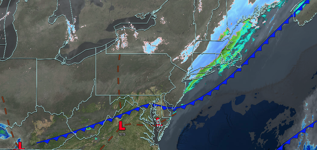 An area of low pressure along the stationary front will produce periods of rain. Low temperatures will range from the lower to mid-30s over the interior and mid to upper 30s along the coast. High temperatures will range from the lower to mid-40s over the interior, lower to mid-40s in the New York City metropolitan area, and mid to upper 40s in the Philadelphia metropolitan area.