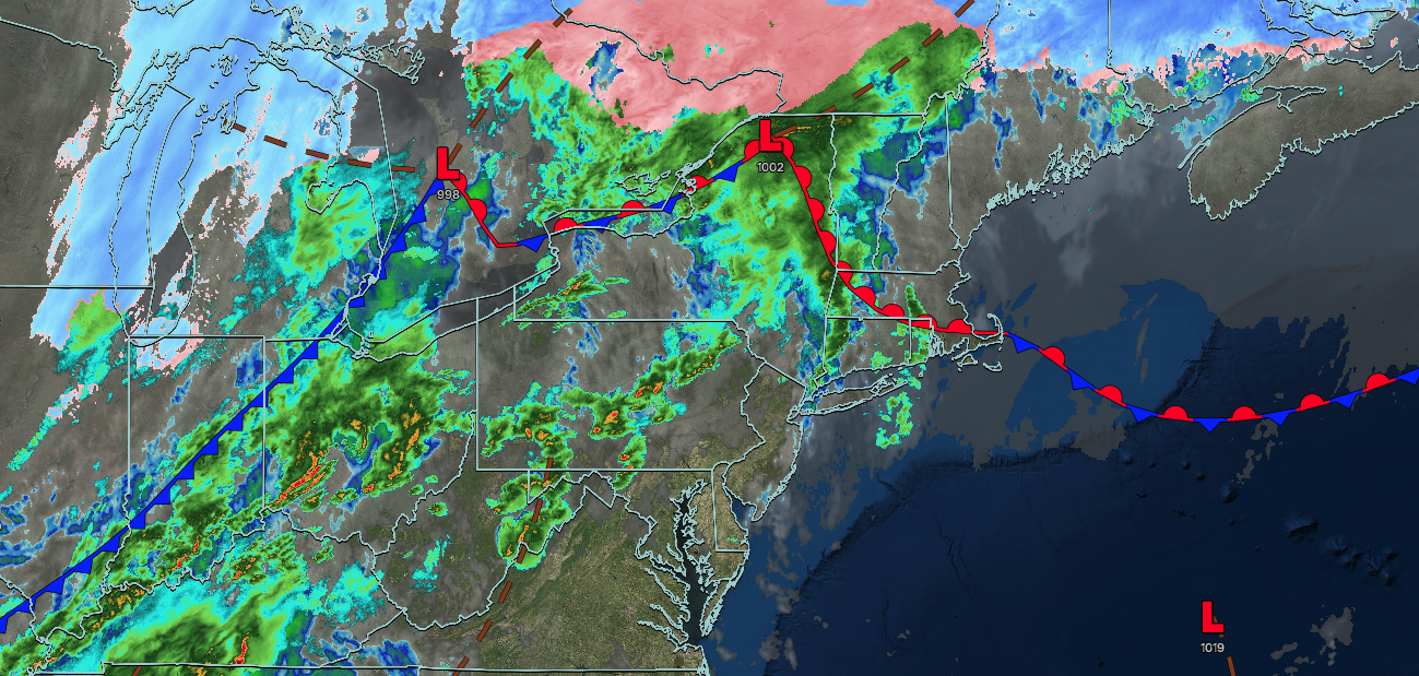 A cold front will produce periods of showers and an isolated thunderstorm. Low temperatures will range from the lower to mid-40s over the interior, mid to upper 40s in the suburbs, and lower to mid-50s in urban areas. High temperatures will range from the mid to upper 50s over the interior and the New York City metropolitan area, and lower to mid-60s in the Philadelphia metropolitan area.