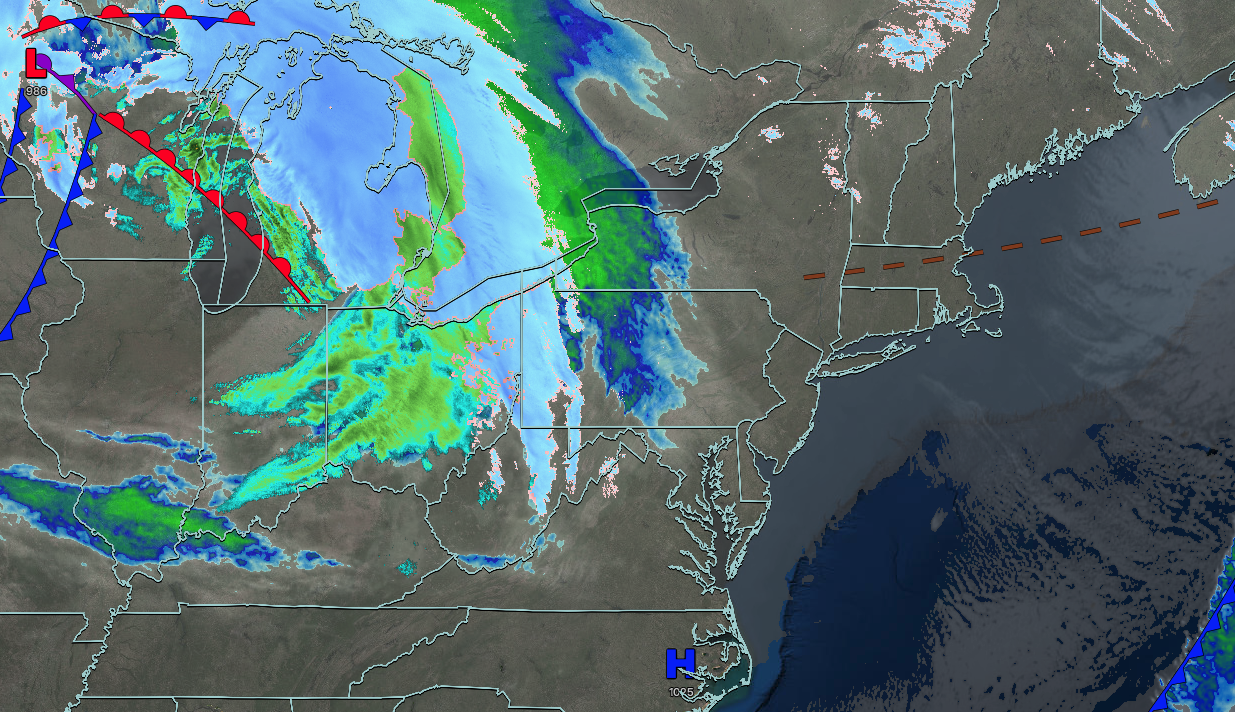 An area of low pressure with a warm front in the morning, followed by a cold front in the afternoon with produce waves of rainfall and embedded thunderstorms. Winds will be from the south at 10 to 20 mph with gusts over 30 mph. Low temperatures will range from the mid to upper 40s over the interior, upper 40s to lower 50s in the suburbs, and lower to mid-50s in urban areas. High temperatures will range from the mid to upper 50s on Long Island, upper 50s to lower 60s over the interior and New York City metropolitan area, and mid to upper 60s in the Philadelphia metropolitan area.
