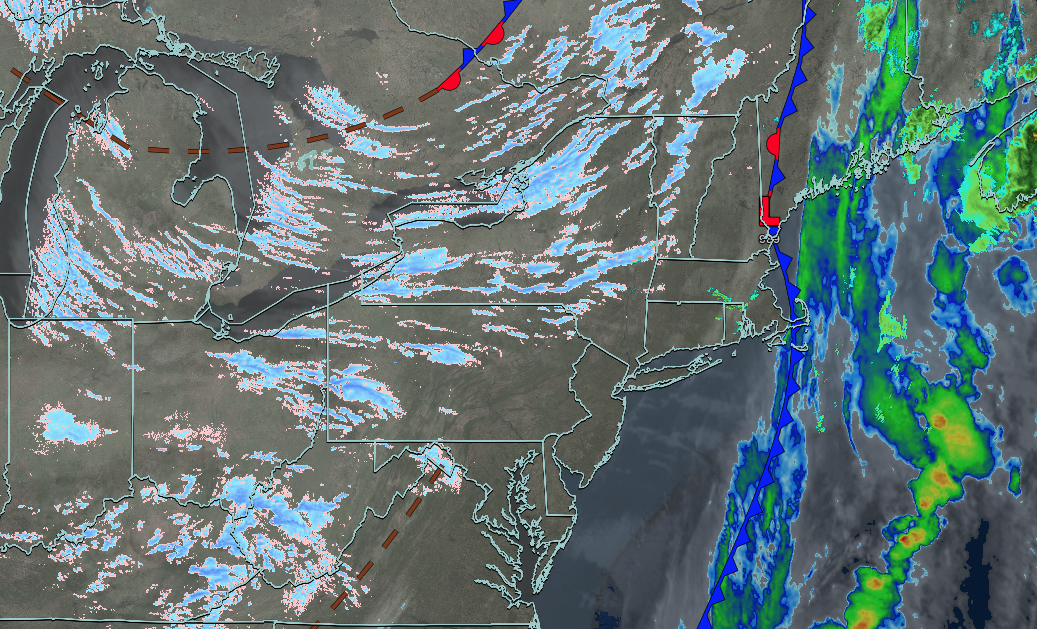 A stationary front will produce variable clouds and scattered showers. Low temperatures will range from the mid to upper 30s. High temperatures will range from the upper 40s to lower 50s on Long Island, lower to mid-50s over the interior and New York City metropolitan area, and upper 50s to lower 60s in the Philadelphia metropolitan area.