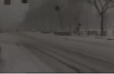An image showing a snow-covered street during a blizzard near New Haven, Connecticut on April 6. 1982. Photo Credit-YouTube.