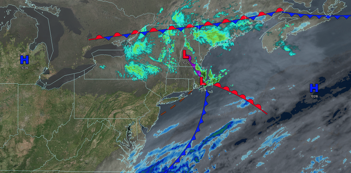 A cold front will produce scattered showers in the morning, followed by clearing skies. Low temperatures will range from the upper 30s to lower 40s over the interior, mid to upper 40s in the suburbs, and lower to mid-50s in urban areas. High temperatures will range from the mid to upper 50s over the interior, lower to mid-60s in the New York City metropolitan area, and mid to upper 60s in the Philadelphia metropolitan area.