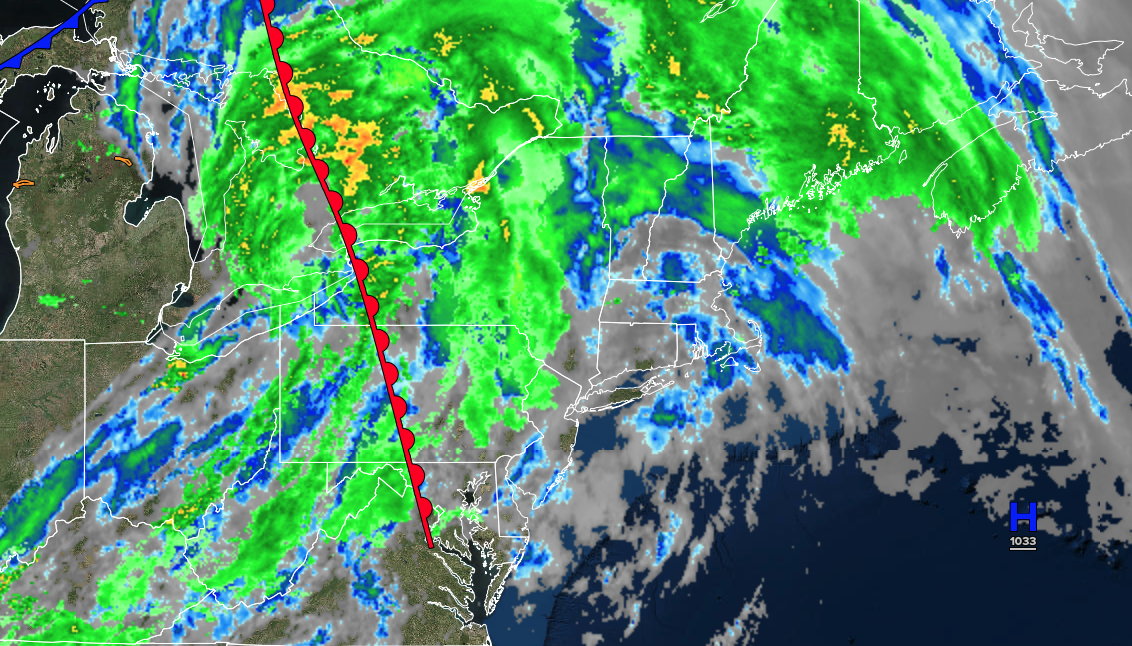 A cold front will clear the region with showers in the morning, followed by clearing skies in the afternoon. Low temperatures will range from the lower to mid-30s over the interior, upper 30s to lower 40s in the suburbs, and lower to mid-40s in urban areas. High temperatures will range from the mid to upper 30s in higher elevations, upper 30s to lower 40s over the interior, and mid to upper 40s along the coast.