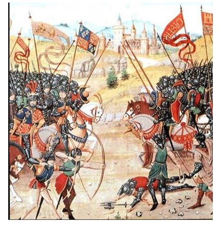 A artist depiction of a battle scene from the Hundred Years War between England and France. Image Credit-Public Domain.