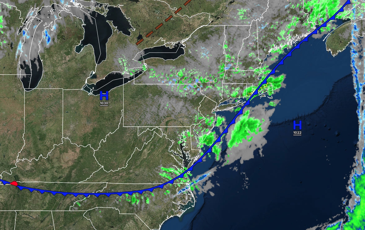A warm front will approach with scattered clouds and isolated showers. Low temperatures will range from the upper 30s to lower 40s over the interior and mid to upper 40s along the coast. High temperatures will range from the mid to upper 50s in southeastern Long Island, upper 50s to lower 60s in northwestern Long Island, mid to upper 60s in the Philadelphia and New York City metropolitan areas, and lower to mid-60s over the interior.