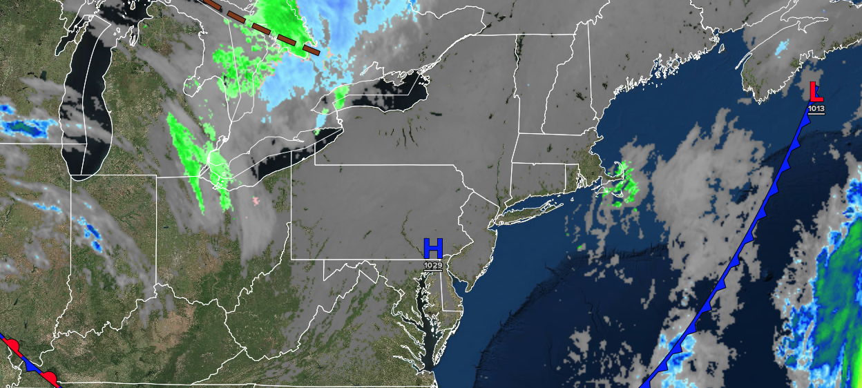 An area of low pressure will produce periods of showers. Low temperatures will range from the lower to mid-40s in the interior and suburbs and mid to upper 40s in urban areas. High temperatures will range from the lower to mid-40s over the interior, upper 40s to lower 50s in the New York City metropolitan area, and lower to mid-50s in the Philadelphia metropolitan area.