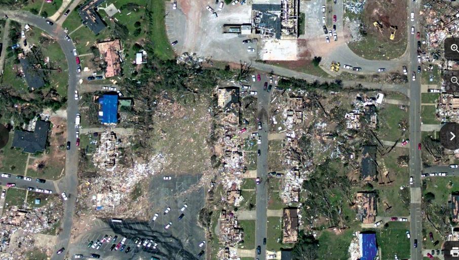 An aerial photo showing extensive damage from an Ef4 tornado that struck Tuscaloosa, Alabama, on April 27, 2011. NWS.