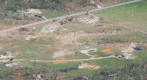 An NWS photo showing damage from an EF4 tornado that struck between Tuscaloosa and Birmingham, Alabama. on April 27, 2011.
