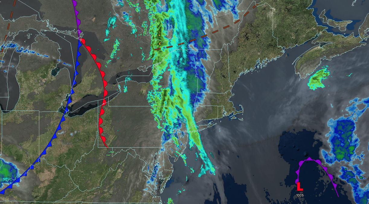 A cold front will produce scattered showers. Low temperatures will range from the mid- to upper 40s over the interior and from the upper 40s to the lower 50s along the coast. High temperatures will range from the lower to mid-60s on Long Island, upper 60s to lower 70s in the New York City and Philadelphia metropolitan areas, and mid to upper 60s over the interior.